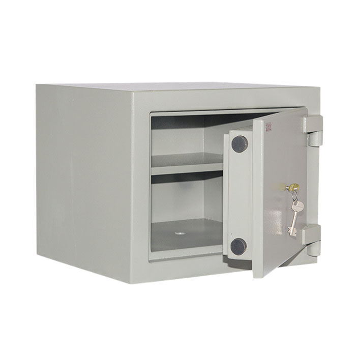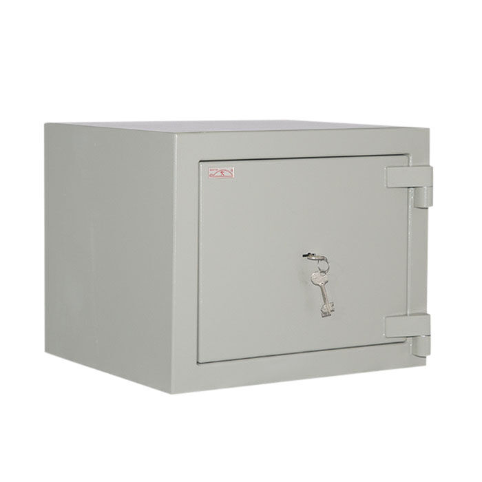 Внутри сейфа «КЗ 053» располагается 1 съемная полка. В дне сейфа предусмотрено отверстие Ø11 мм для возможности анкерного крепления его к полу. Запирание сейфа осуществляется за счет ключевого сейфового замка класса «А» с ригельной системой — 2 активных ригеля Ø28 мм в сторону и пассивный П-образный ригель со стороны петель. Петли сейфа наружные, открывание двери – на 180°.