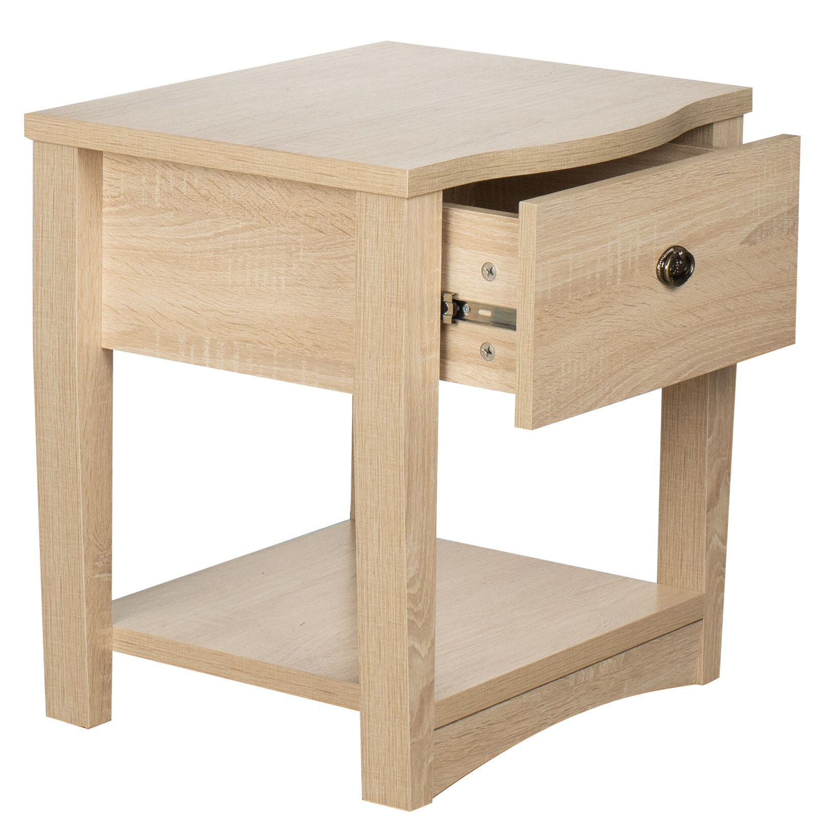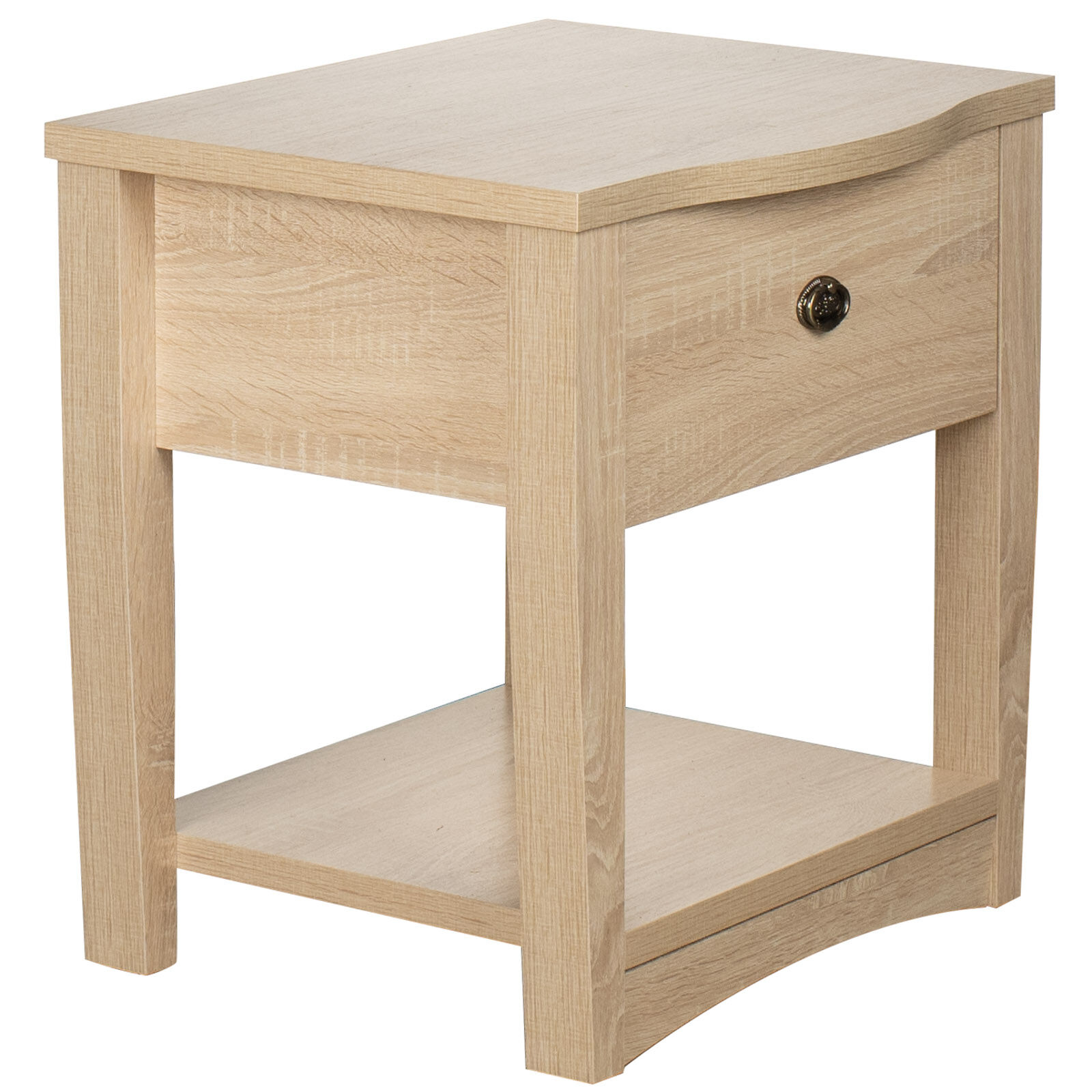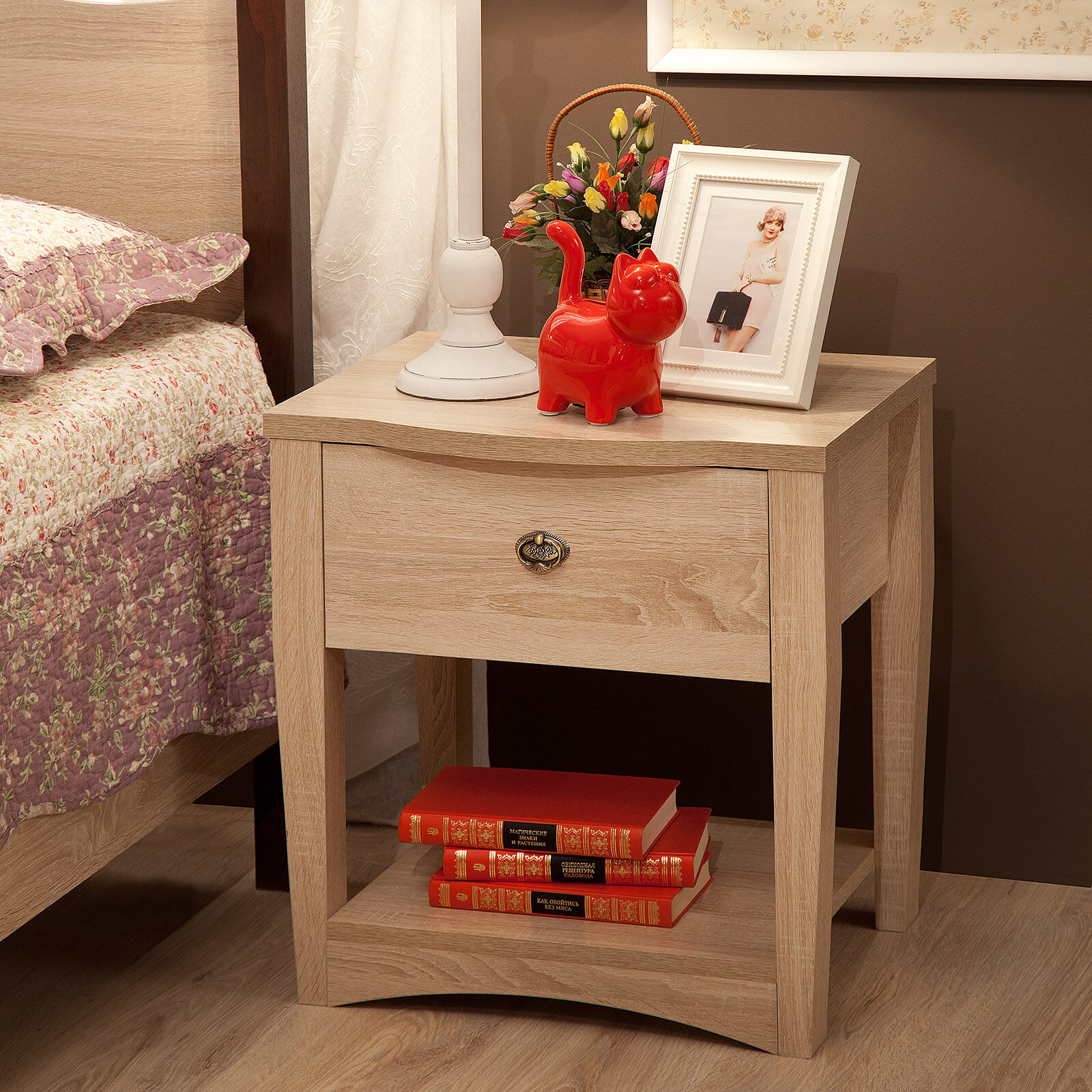 Легкость и оригинальность прикроватной тумбочки «Adele 6 дуб сонома» с фигурной столешницей и цоколем подчеркивается изящными скошенными опорами. В выдвижном ящике используются шариковые направляющие полного выдвижения, которые выдерживают большую нагрузку по сравнению с роликовыми направляющими и имеют плавный ход при открывании, закрывании. «Мебель поставляется в разобранном виде».