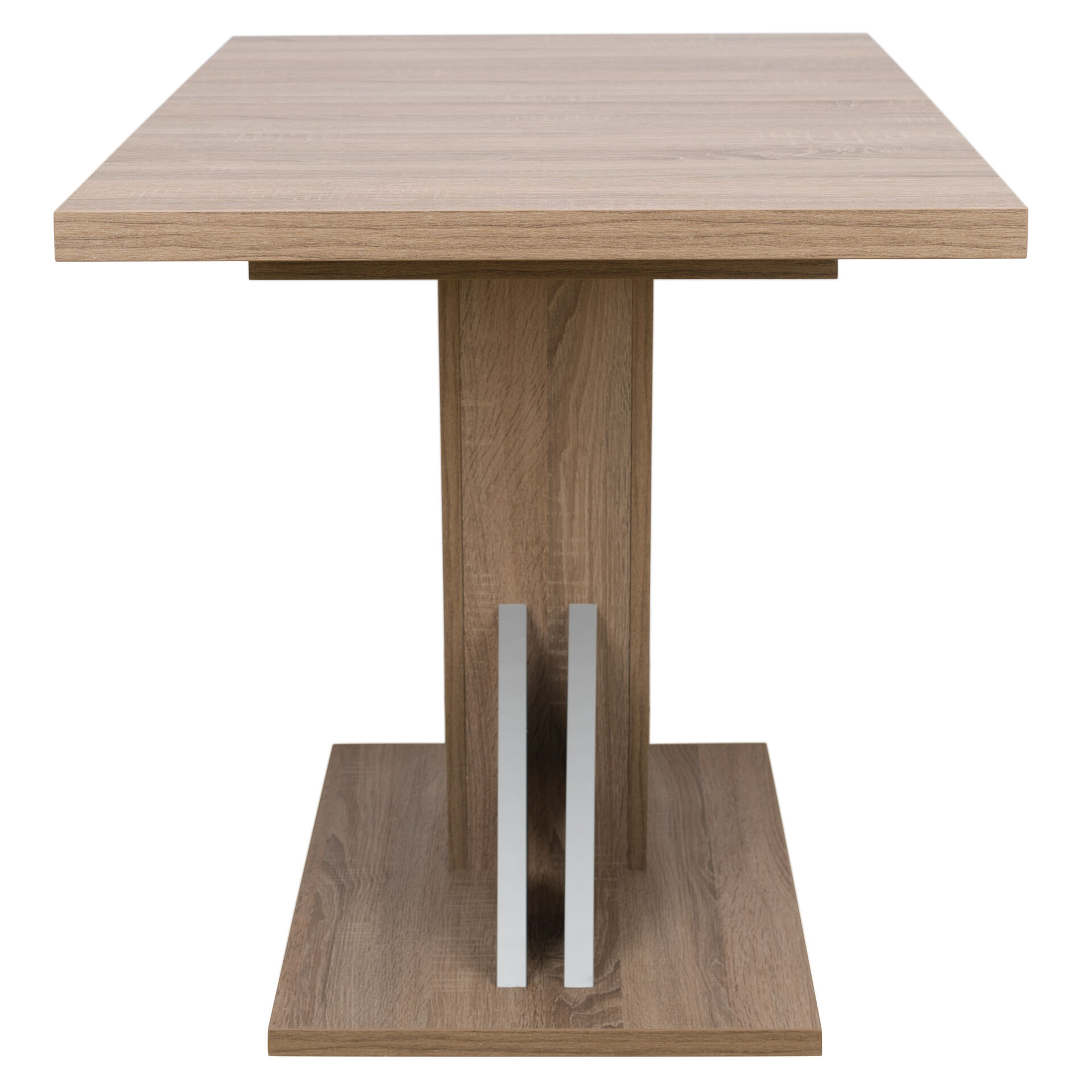 Стол раздвижной «LESET Луссо » - прочный и надежный, сделан из ЛДСП в фабричном стиле лофт. Имеет крепкую прямоугольную столешницу с выдвижными секциями, толстую прямоугольную опору с дополнительными подпорками и прочное квадратное основание. Внешняя отделка выполнена в натуральном стиле, с крупной фактурой рисунка под дуб. «Мебель поставляется в разобранном виде».