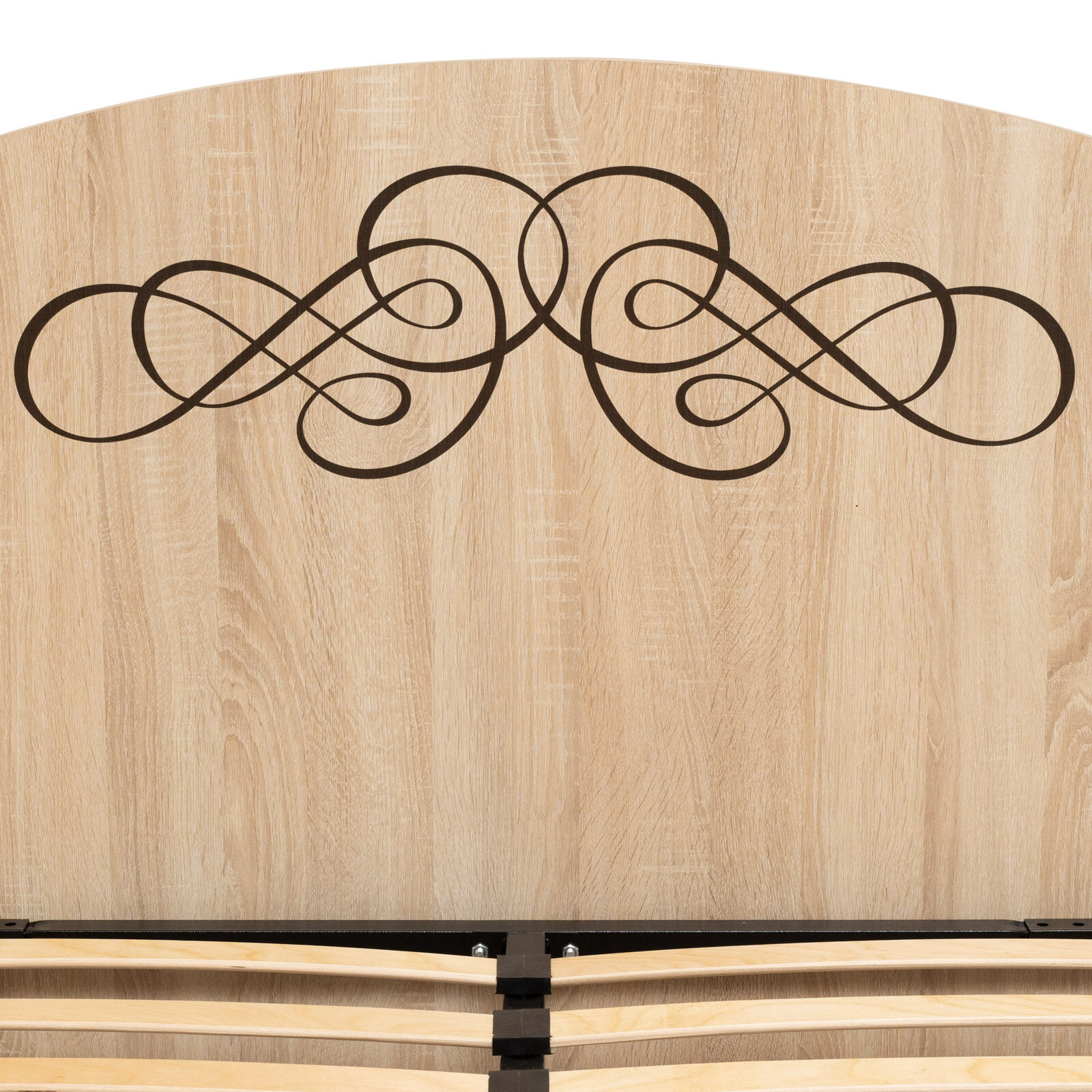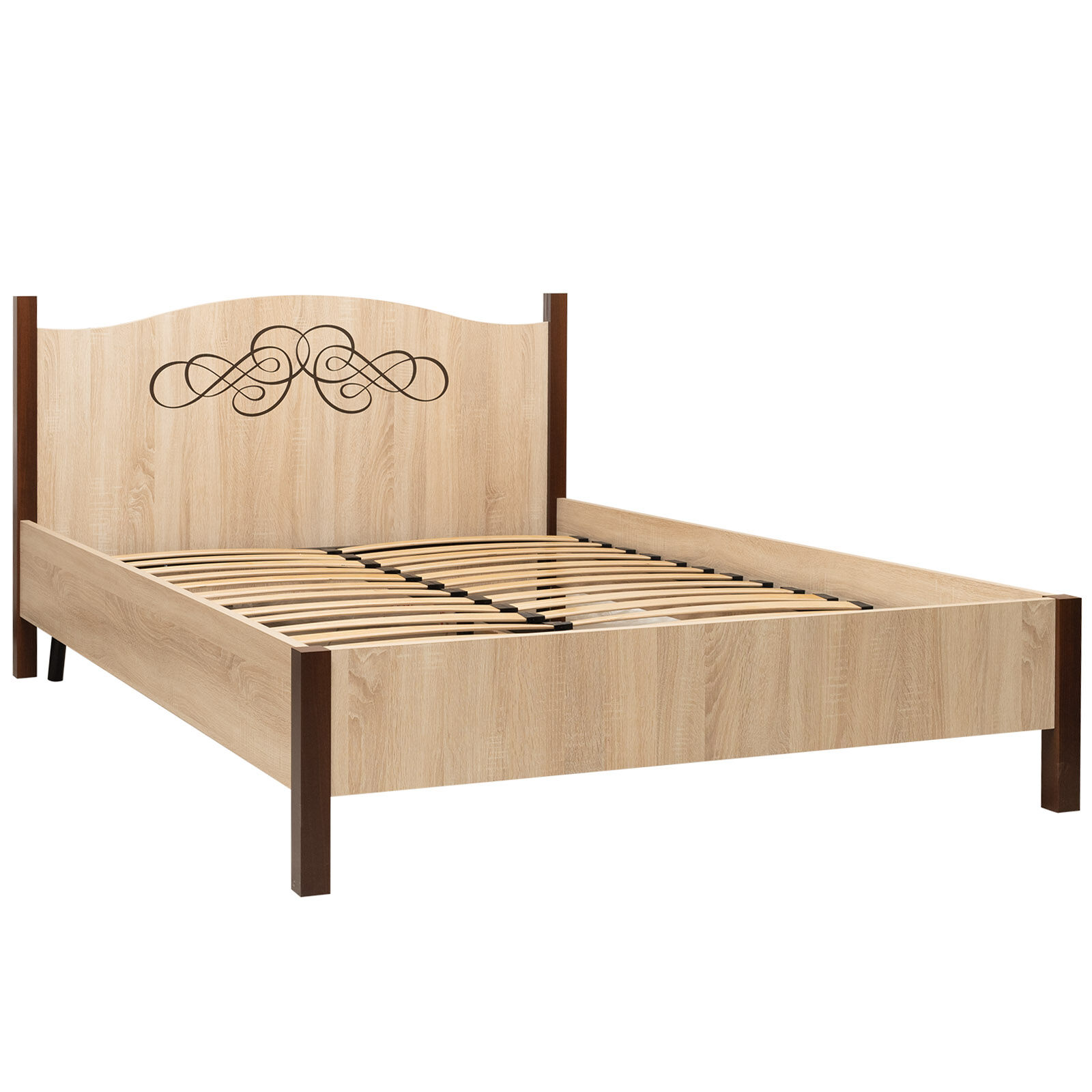 Изящная двуспальная кровать «Адель 160+орт. основание дуб сонома-орех шоколад» создаст уютное место для отдыха. Каждая деталь изделия приводит в восторг — строго очерченный каркас, плавно изогнутое изголовье, украшенное витиеватым орнаментом, и контрастирующие с корпусом утонченные темные ножки. Модель комплектуется основанием с гибкими ламелями, которые обеспечивают хороший воздухообмен, продлевая срок службы матраса. «Матрас в комплект не входит». «Мебель поставляется в разобранном виде».