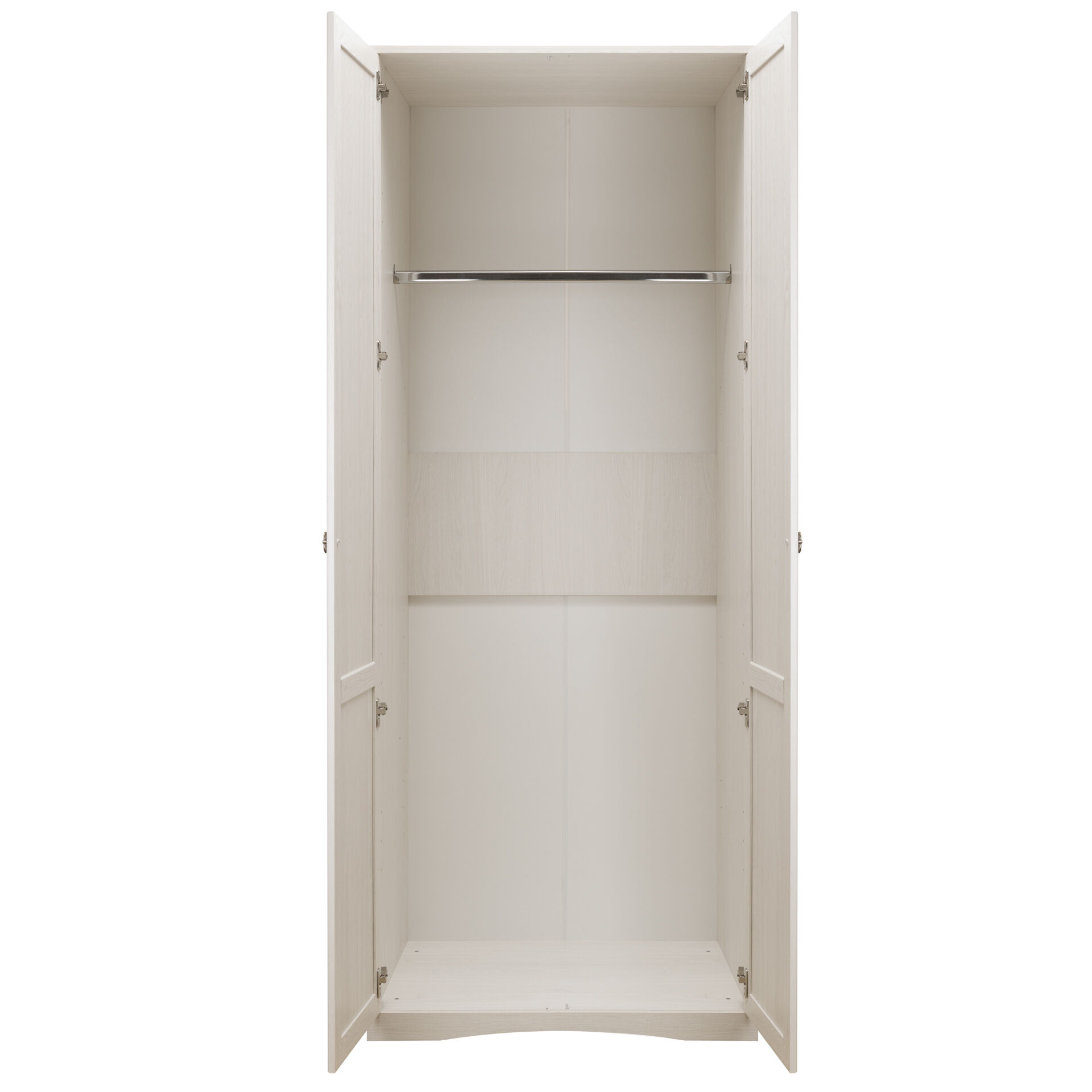 Распашной шкаф «Adele 8 Ясень анкор светлый» с глухими дверями, комплектуется стационарной штангой для одежды длиной 75 см. «Мебель поставляется в разобранном виде».