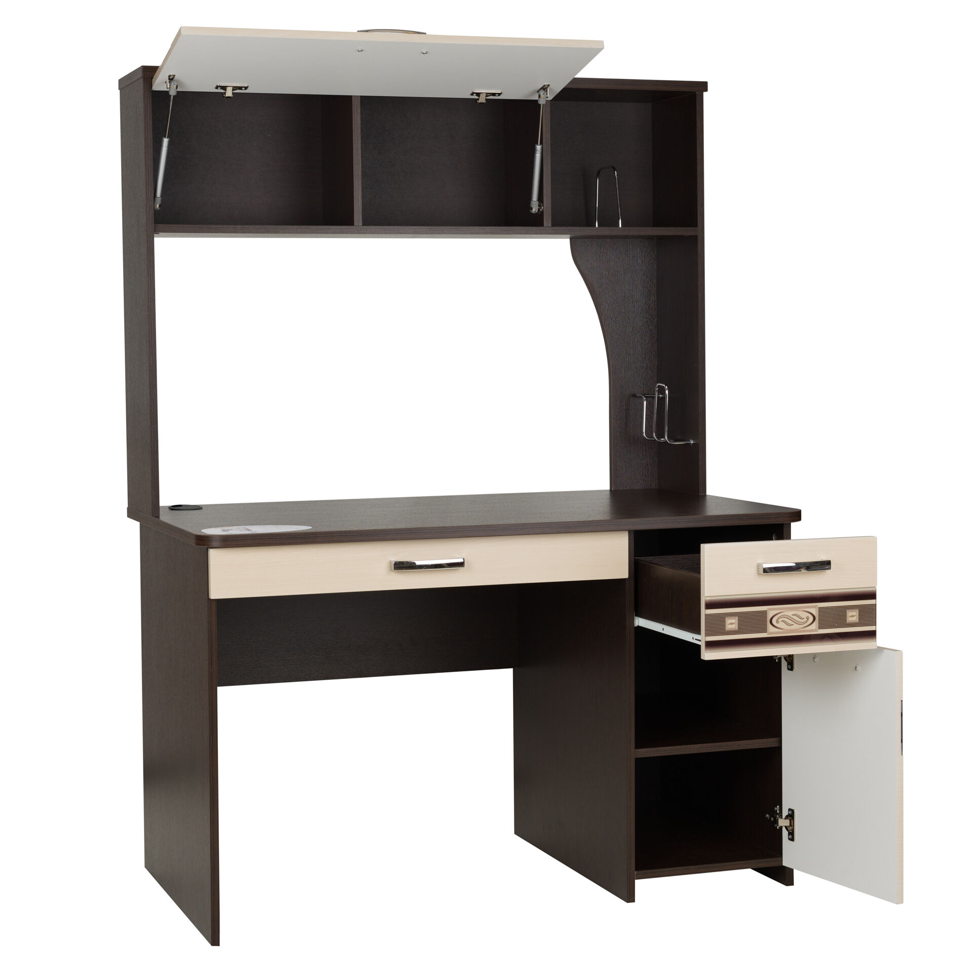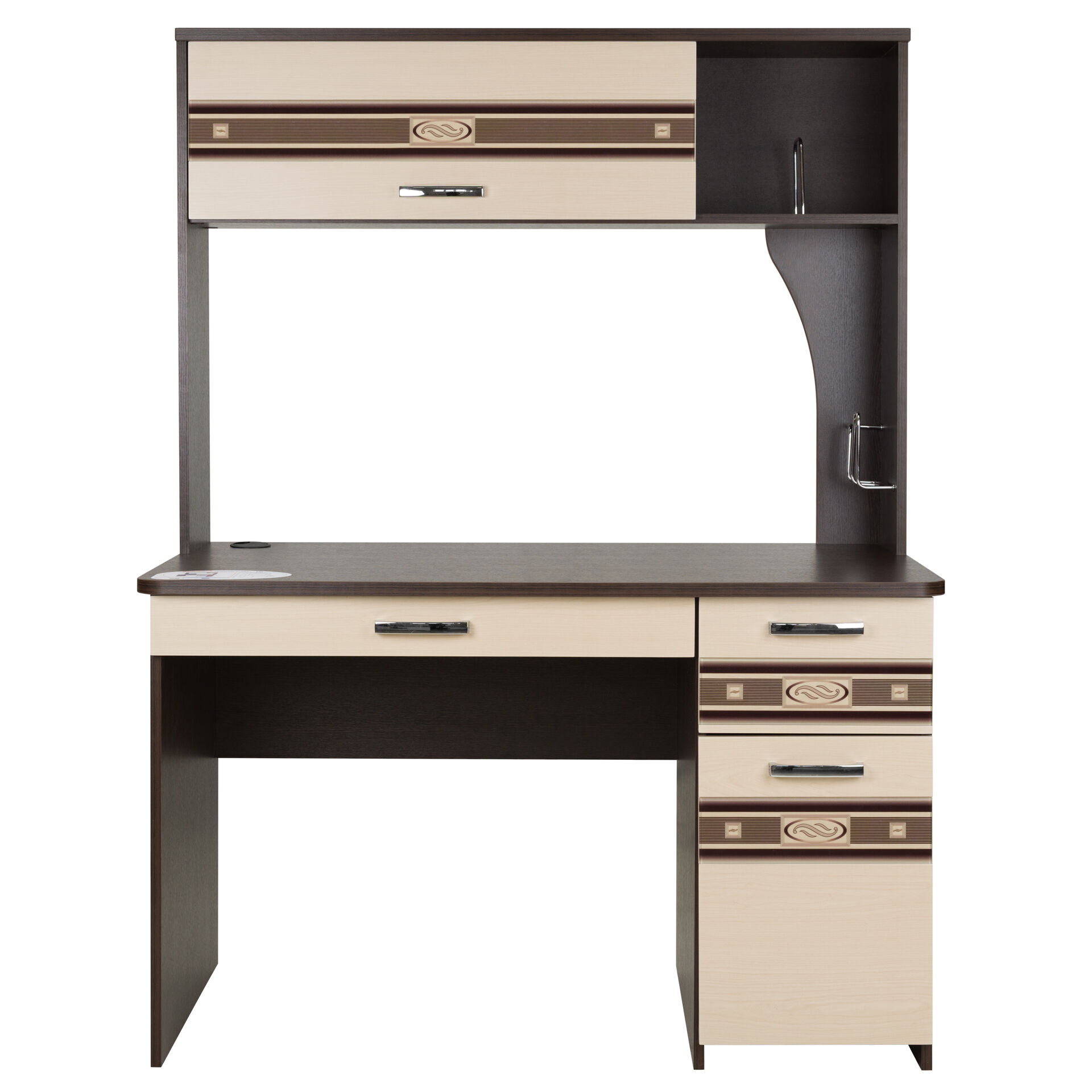 «Орион 7.10 Стол компьютерный венге-беленый дуб» - эта модель выполнена в современном стиле. Отличительная черта данного стола – функциональность. В него входит большое количество ящиков разных размеров, открытые и закрытые полки, которые позволяют разместить тетради, учебники, канцелярию и другие необходимые предметы. Открытая полка имеет универсальный держатель для книг, блокнотов,тетрадей, сделанный из гнутой проволоки с глянцевым покрытием. Высота надстройки позволяет поместить монитор с диагональю до 24 дюймов. «Мебель поставляется в разобранном виде».